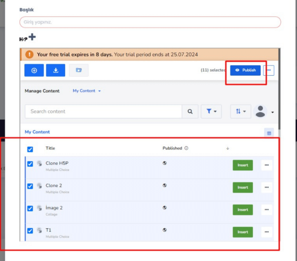 Vedubox, modern eğitim ihtiyaçlarını karşılamak üzere geliştirilmiş bir LMS platformudur ve LTI standardını kullanarak kullanıcılarına bu konuda bir deneyim sunar. Vedubox’a entegre edilen araçlardan biri de H5P içerik üretme aracıdır. LTI altyapısı sayesinde, Vedubox kullanıcıları H5P’yi sorunsuz bir şekilde kullanarak, platformlarına zengin ve etkileşimli içerikler ekleyebilirler. Bu sayede, eğitim materyalleri daha etkileyici hale gelir ve öğrencilerin öğrenme deneyimi daha da zenginleşir.